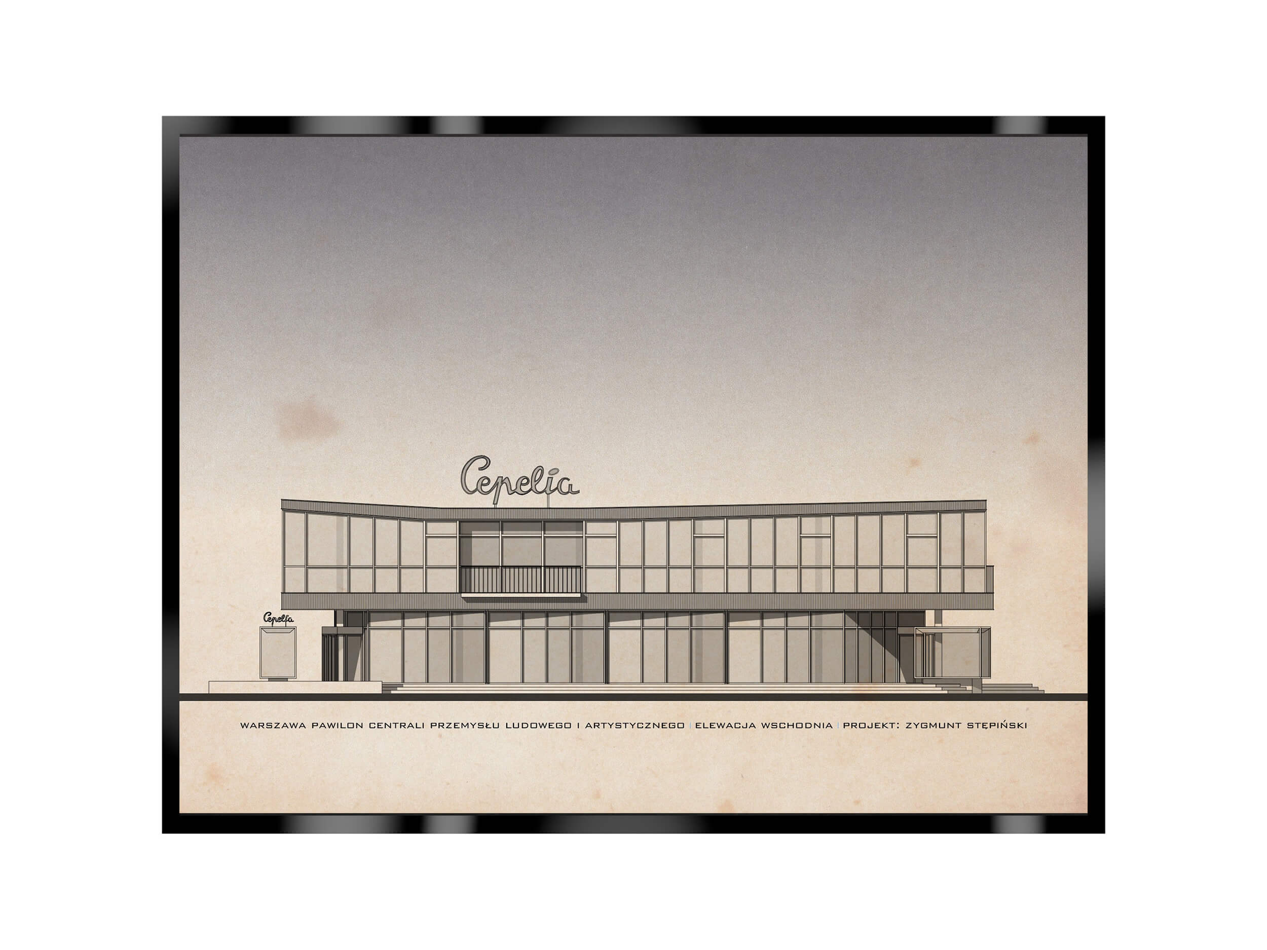 - Motyw: Elewacja frontowa budynku Cepelii w Warszawie.