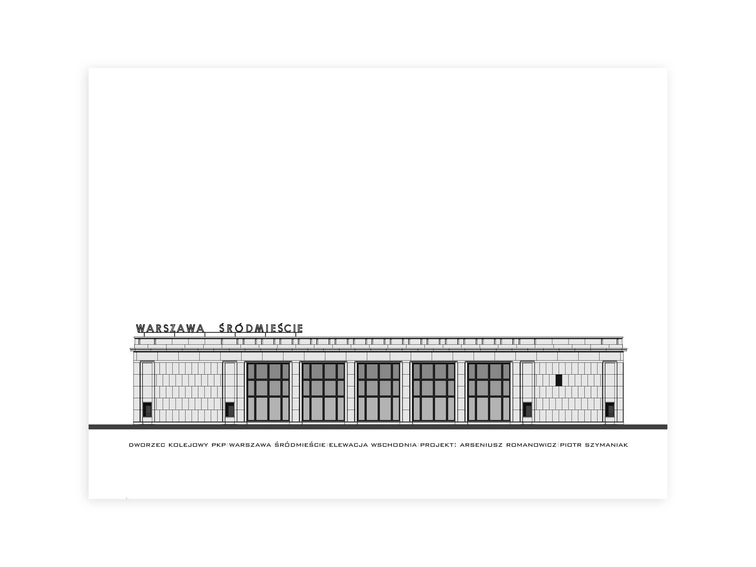 - Motyw: Elewacja frontowa budynku Dworca Warszawa Śródmieście.
